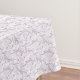 This elegant cotton tablecloth features a repeating pattern of lilac floral scrolls on a white background.