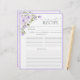 Designed to accompany our matching Bridal Shower Recipe Binder, part of a matching Bridal Shower Invitation Suite, this pretty recipe card features luxurious combination of pretty rose watercolor florals, in trendy lilac lavender colour theme. Classic elegance with a modern twist, incorporating hand written calligraphy, and elegant serif typography. There are plenty of lines for the recipe, and the back matches the front, so each guest can give the bride two recipes. A margin has also been left on the page to accommodate the margin. CLICK HERE for the coordinating Recipe Binder: https://www.zazzle.com/elegant_lilac_lavender_floral_bridal_shower_recipe_3_ring_binder-256545886977719342 View entire suite here: https://www.zazzle.com/collections/elegant_lilac_lavender_floral_bridal_shower-119730120254921497 Contact designer for matching products. Copyright Anastasia Surridge for Elegant Invites. All rights reserved.