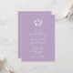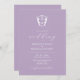 Elegant lilac wedding invitation features a minimal design with a monogram crest. Modern script typography with classic serif font in white. The card reverses to a matching purple colour. To shop the complete line visit www.zazzle.com/dotellabelle