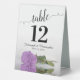 These tent signs will not only help your guests find their tables, they'll also make your wedding reception more beautiful. The design is both elegant and romantic featuring a single lilac purple coloured rose lying on its side reflecting in water with waves and ripples. The title is in lacy script calligraphy with bold numbers so your guests can easily find the right table. There is room for the names of the couple and the wedding date.
