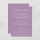 Elegant lilac wedding details enclosure card with chic calligraphy script and fully customisable text.