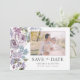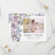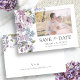 Announce your wedding with timeless elegance using this save-the-date card, featuring a delicate side bouquet of hand-painted watercolor lilacs in dreamy lavender, purple, and blue, accented with lush greenery. The front beautifully highlights your engagement photo, making it a personal and heartfelt keepsake for your guests. On the back, a refined monogram and your wedding website ensure all the important details are easily accessible. Customise the wording, font styles, and sizes to make it uniquely yours. It is a perfect way to build excitement and set the tone for your special day.