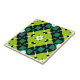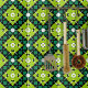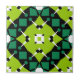 Modern vibrant ceramic tile design featuring a seamless pattern composed of geometric shapes in lime green, emerald green, black and white.