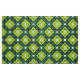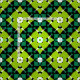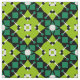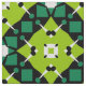Modern vibrant fabric design featuring a seamless pattern made of geometric shapes in lime green, emerald green, black and white.