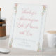 It is sturdy than I expected. Was worried about the material being flimsy but it is not. It is printed on some sort of plastic material. It should serve well at our wedding as long as wind isn’t too bad. Otherwise we will put some paper weights behind it and should be fine.