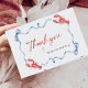 Express heartfelt gratitude with these elegant "She's a Catch" lobster-themed folded thank you cards! The front features a whimsical watercolor design with red lobsters, flowing blue ribbons, bows, plus a sweet "Thank you" script and heart accent. Inside, a customizable pre-written message thanks guests for making the day unforgettable, with space for your personal note.