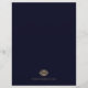 A luxurious custom business letterhead template in a modern style with a stylish navy blue border which can be easily updated with your company logo and letterhead footer including your company's name and tagline. The solid blue back features a smaller logo with space for your website address, telephone, email or any other information including social media usernames. Each sheet exudes professionalism and sophistication, making it perfect for official correspondence, invoices, or important business documents.