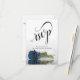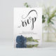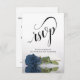 These beautiful RSVP cards will make it easy for your guests to respond to your wedding invitation. They feature an elegant design with fancy script calligraphy and a single long-stemmed dusty steel blue coloured rose reflecting in a pool of water with waves and ripples. The back of the card is a form for your guests to fill out and return indicating if they can attend or not, the number of guests they're bringing, and their choice of meals. There is also space for a website so your guests can respond online if it's more convenient for them.