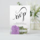 These beautiful RSVP cards will make it easy for your guests to respond to your wedding invitation. They feature an elegant design with fancy script calligraphy and a single long-stemmed lilac purple colored rose reflecting in a pool of water with waves and ripples. The back of the card is a form for your guests to fill out and return indicating if they can attend or not, the number of guests they're bringing, and their choice of meals. There is also space for a website so your guests can respond online if it's more convenient for them.