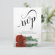 These beautiful RSVP cards will make it easy for your guests to respond to your wedding invitation. They feature an elegant design with fancy script calligraphy and a single long-stemmed rust orange or burnt umber coloured rose reflecting in a pool of water with waves and ripples. The back of the card is a form for your guests to fill out and return indicating if they can attend or not, the number of guests they're bringing, and their choice of meals. There is also space for a website so your guests can respond online if it's more convenient for them.