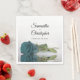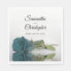 These beautiful wedding napkins will add style and class to your reception, rehearsal dinner, or other wedding related event. They feature a simple yet elegant and romantic design with a single long-stemmed teal or turquoise coloured rose reflecting in a pool of water with waves and ripples. Above the rose are the names of the couple and wedding date.