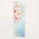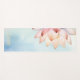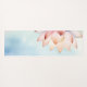 This yoga mat features a refined lotus flower illustration, delicately rendered in soft blush against a calming sky-blue background. The composition is intentionally asymmetrical, with the lotus partially revealed along the edge, creating a sense of quiet movement and modern elegance.