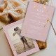 An extraordinarily modern calligraphy script Love In Bloom, framed in a gold boho floral branch against a blush pink background makes an awesome way to announce the bride-to-be's special day. Ideal for any modern bridal shower theme.