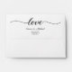 Personalise this outer wedding envelope with your return address and names using the easy to use template. Elegant "love" script typography on a black lining inside the envelope and on the flap. A sophisticated touch.