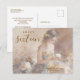 Available in postcard size, with two high-quality paper options, highlighting pastel tones, delicate flowers, and the elegance of the golden and gray gown.