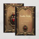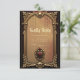 Elegant luxurious heart emblem. The design features an ornate, arched golden frame against a gradient brown background. The frame is highly detailed with baroque-style flourishes. Hanging from the top of the arch are delicate golden chains with teardrop pendants. At the bottom centre, a smaller, similarly styled golden frame displays a red heart emblem flanked by winged serpents. The overall mood is luxurious and decorative.