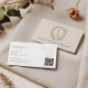 Elevate your professional style with our Elegant Luxury Floral Monogram Crest Business Card. This exquisite design features hand-drawn sketch-style florals and leaves arranged into a sophisticated crest, perfectly framing your personalized monogram and business name. The reverse side showcases your contact information in a clean, minimalist layout, complemented by a delicate hand-drawn flower and optional QR code for modern convenience. Ideal for a wide range of businesses—including interior designers, boutique salons, or stylish shops—this card combines timeless elegance with practical functionality. Each card is crafted with original artwork by ©Moodthology Papery, making it a unique and luxurious statement for your brand.