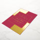 Introduce a touch of luxury to your wedding celebration with our modern foil wedding invitation, featuring elegant gold calligraphy on a bold magenta background with a gold frame. This invitation exudes sophistication and glamour, making it the perfect choice for your special day. The beautiful gold foil calligraphy is paired with a rich magenta background, creating a stunning contrast that is sure to impress your guests. The high-quality cardstock and your choice of size and paper type ensure a luxurious and personalised touch. Whether you're looking for a touch of elegance or a statement piece, this wedding invitation is sure to make a lasting impression. Add a touch of glamour to your wedding celebration with this modern gold foil invitation.