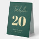 This wedding table number is the epitome of modern elegance. The classy gold calligraphy stands out against the vibrant emerald green background, creating a stunning and sophisticated look. The simple design is versatile and suitable for any wedding theme, while its customisation options allow you to choose the perfect colour to match your unique style. With its eye-catching design, this table number will help guide your guests to their seats while adding a touch of glamour to your reception. Upgrade your wedding décor with this classy and customisable table number.