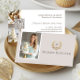 Elevate your home bakery brand with our Elegant Luxury Home Baker Business Card Template by ©Moodthology Papery. This chic and classy design features a clean, sophisticated layout with a hand-drawn floral vintage gold floral crest on the front, perfect for displaying your monogram above your business name. Add your photo to personalize the card and make a memorable first impression. The reverse side allows you to showcase two additional photos, a QR code, and your contact info and social media handles, making it easy for clients to connect with you online. Ideal for home bakers, bakery businesses, catering services, and pastry chefs, this customizable template combines elegance and functionality, helping your brand stand out.