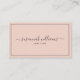 Beautiful luxury business card with gorgeous calligraphy script for your name or business on millennial pink. Your personal contact information on the back.