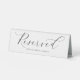 This elegant reserved tent sign is perfect for setting at tables, chairs or pews. It features a soft, luxurious calligraphy script. You can edit the line to say who the seat is reserved for or delete it if you like. It's set in black and white. Simple, modern & elegant wedding reserved table tent signs.