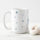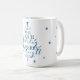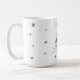 Celebrate the magical and festive holiday season with our custom holiday mugs. Our modern holiday design features our holiday Christmas tree graphic designed with a elegant and stylish script handwriting typography "May Your Holiday Be Merry & Bright" in watercolour blue and gold colour that creates the impression and design of a Christmas tree. A star is placed at the top of the tree. Beautiful stylised faux gold and blue stars are scatted around the Christmas tree typographic design. All artwork contained in this typography Christmas tree photo holiday mug are hand-drawn original artwork by Moodthology. You can customise the text size, text colour, font and layout for your own personal design preference