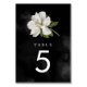 Make a sophisticated statement on your special day with our elegant magnolia wedding table number signs. These signs will add a glamourous touch to your wedding decor. Featuring a white magnolia on a black watercolor background, the table numbers will bring an air of sophistication and style to your tablescapes. Matching items in our store Cava Party Design