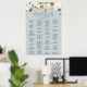 This elegant magnolia blue alphabetical seating chart poster is perfect for a modern classy wedding. This sign can be used to organise your guests alphabetically or by table number. The soft floral design features watercolor blush pink peonies, stunning white magnolia flowers with gold and green leaves in a luxurious arrangement on a light blue grey background. This wedding poster includes enough room for up to about 120 guests. Make room for more (or less) guests by clicking the "customise" button and decrease or increase the size of the font. In addition to the placement of each guest, personalise this sign with the names of the bride and groom and the wedding date.