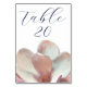 Elegant Magnolia Pink and White Wedding Table Number Card for your Reception Dinner Accessories. Designed with a soft pink and white magnolia flower on a white background. The text includes: Table; plus one Number. To add a table number, simply replace the sample number with your text. Order one card per table number. Note the number is automatically inserted on the reverse side, but please check both front and reverse to ensure you are satisfied before ordering.