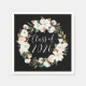 Add a stylish touch to your graduation party with floral graduation napkins. The custom graduation napkins feature the phrase "Class of 2025" in a white calligraphy script encircled by a wreath of white magnolias, blush pink roses, cotton blooms, and green leaves.