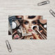 Present yourself with style and professionalism with this Elegant Makeup Artist Business Card. This chic design features various makeup items such as brushes, lipsticks, blush, and eyeshadow palettes arranged around a central area. The background is enhanced with decorative elements like flowers and jewellery, adding a touch of luxury and sophistication. Perfect for makeup artists and beauty professionals, this customisable card allows you to personalise with your name and profession, creating a unique and professional look
