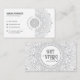 Showcase your artistic flair with this elegant business card designed for art studios, artists, and designers. Featuring a beautiful, intricate grey mandala pattern on a clean white background, this card exudes creativity and sophistication. It's fully customisable to include your name, title, contact information, website, and studio address. Perfect for art exhibitions, client meetings, and networking events, this unique design helps you make a memorable and professional impression. Ideal for graphic designers, UI/UX designers, painters, sculptors, and anyone in the creative arts field.