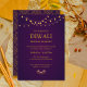Invite your loved ones to a radiant Diwali celebration with this elegant party invitation, featuring a deep purple background, glowing golden string lights, and traditional oil lamps. The front showcases refined typography and festive charm, while the reverse side adds a luxurious touch with a rich mandala pattern that enhances the cultural essence of the occasion.