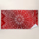 Personalised red beach towel decorated with an elegant white mandala. Use the template to customise with your name.