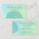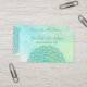 Create a unique yoga business card with elegant mandala flower on stylish teal green watercolor look background.