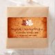 Elegant maple leaves orange fall wedding label that features elegant maple leaves in brown and white colours on burnt orange grunge stained background. This elegant modern wedding template design is part of a wedding collection or set and is totally customisable. It is perfect for a fall or autumn wedding.