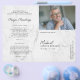 Personalised funeral memorial program featuring your favourite photo, and spots for an obituary, order of service, thank you note, and prayer, on an elegant watercolor marble background. Note that the cards arrive flat, and you'll need to Fold Down the Middle to convert them to folded papers.