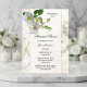 Elegant floral memorial or funeral service invitation featuring a marble design with white roses.
