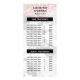 A elegant price list with a background of grey marble. Perfect for your salon, spa, or nail bar. You will personalise with your business name followed by the treatments you offer. This has been divided into two sections. On the reverse you will provide your business information so the customer will have all your contact information. A pretty faux glitter in rose gold and blush pink decorates the top edge.
