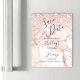 A chic, modern design featuring an elegant marble background trimmed with faux glitter in shades of rose gold, pink and white. The words "Save the Date" and the first names of the bride and groom appear in charcoal grey script, with the remaining text in sans serif font.