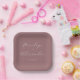This elegant wedding plate features a sophisticated maroon background with white text, creating a striking contrast. The design showcases two flowing cursive names and a simple sans-serif date, all centered for a balanced composition. Its minimalistic style emphasizes clarity and refinement, making it perfect for formal occasions like weddings or anniversaries. The customizable placeholders allow personalization, adding a unique touch to your special event.