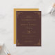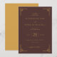 This elegant wedding invitation features a deep maroon background with gold geometric borders, creating a sophisticated and formal aesthetic. The design includes a mix of serif, sans-serif, and script fonts in gold, enhancing readability and visual appeal while maintaining an air of celebration. Customisable text fields allow for personalisation, making it perfect for couples looking to add their unique touch to their special day. The overall mood is one of elegance and refinement, ideal for a memorable wedding ceremony.