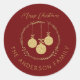 Elegant Maroon Gold Glitter Christmas Family Name Classic Round Sticker