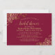 This beautiful bridal shower invitation is both simple and elegant. It features gold text on a maroon or red burgundy background with lacy gold faux foil frills or filigree in the corners. It has information on both the shower as well as RSVP and registry. Perfect way to celebrate the bride to be in style!