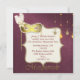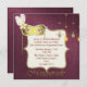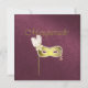 Elegant masquerade party invitation done in a lovely burgundy Fleur damask design, with graphics of a gold tone glitter edged text area. Pretty graphics of a ornate gold tone mask and decorative baubles hanging down the top and gold tone graphic text, at the bottom reading Masquerade. Text in a maroon colour is fully customisable to suit your event needs.