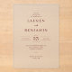 This elegant wedding invitation features a minimalist design with centered text on an off-white background, creating a clean and sophisticated look. The soft maroon color palette adds a touch of warmth and formality, while the classic serif font enhances readability and elegance. With ample white space and no decorative motifs, this invitation relies solely on typography to convey its message, making it perfect for couples seeking a timeless and refined aesthetic. Ideal for formal weddings, it sets the tone for a memorable celebration.