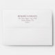 Elegant maroon red lined wedding envelopes personalised with a return address in a classic serif font. Handwrite our guest address or click the button to edit the design to pre-address it online.
