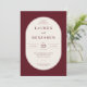 This elegant wedding invitation features a sophisticated oval frame centered on a deep maroon background, with a soft cream interior that highlights the text. The design uses classic serif fonts to convey formality and timelessness, arranged in a balanced layout that guides the eye smoothly from top to bottom. Customizable elements allow for personalization of names, dates, times, and locations, making it perfect for a formal celebration. The overall mood is one of traditional elegance, ideal for couples seeking a refined and harmonious aesthetic for their special day.