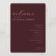 This wedding program features a sophisticated, minimalist design with a deep maroon background and crisp white text. The layout is elegant, combining cursive and serif fonts to create an inviting and formal atmosphere. It includes customizable sections for the ceremony schedule, ensuring clarity and readability. Perfect for couples seeking a classic yet modern look, this program sets the tone for a memorable celebration.